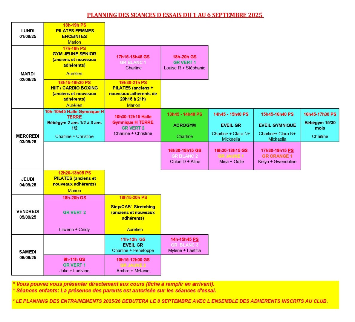 Séances d essai gratuites du 1 au 6 septembre